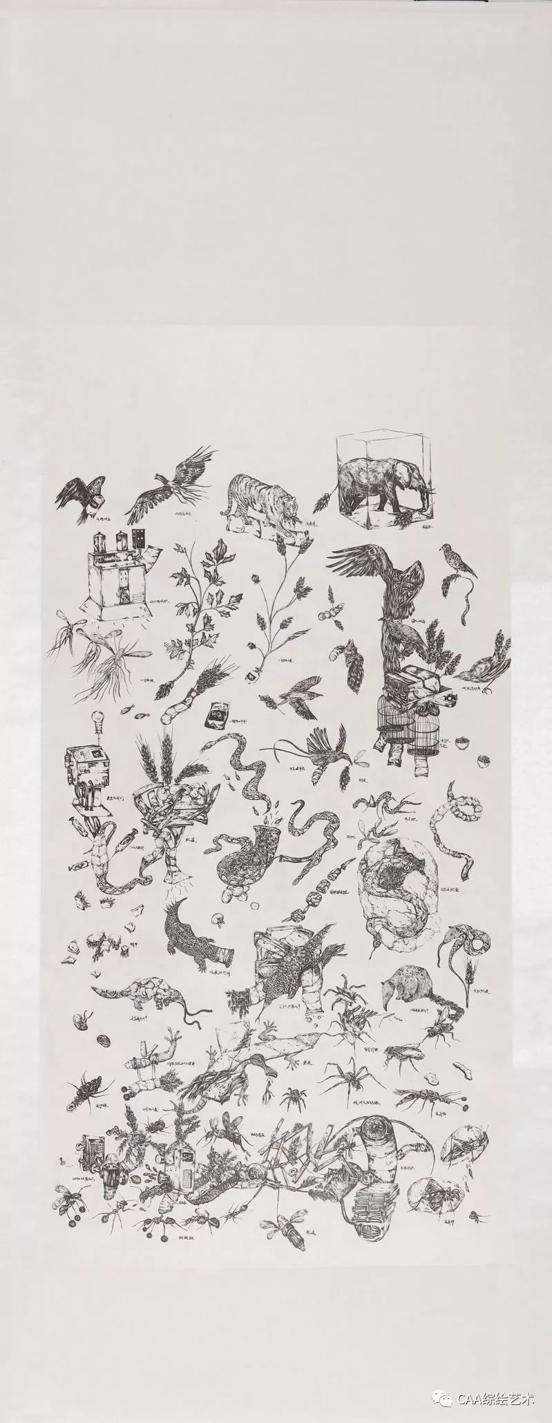 《假如小麦成为一种血液的历史》纸本综合 120x 240cm 2017 吴晨凯