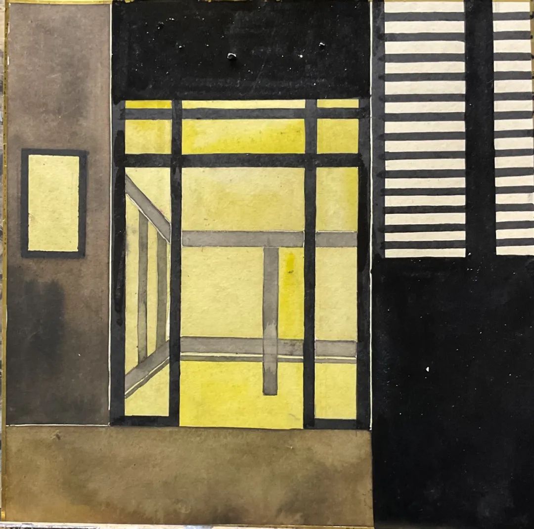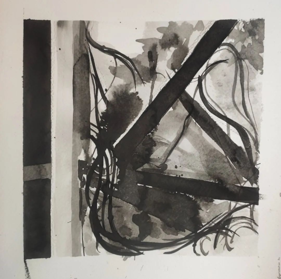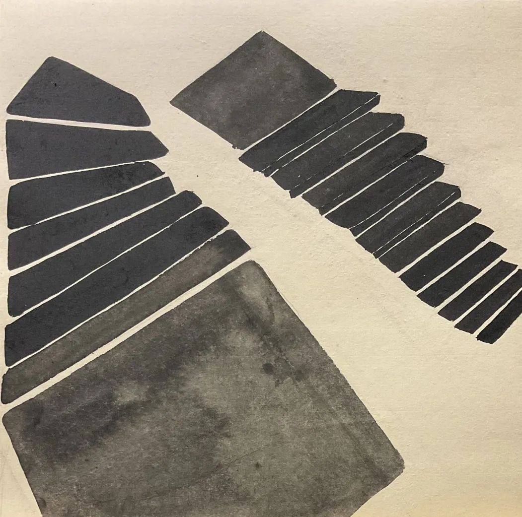 此次由黄老师带领的下乡课程对于我来说是一次全新的自主创作体验,从考察采风到整理思路,再到寻找创作主题,从绘制小稿材料到尝试扩大系列作品,从整体全局景观到扩大局部、平面化及几何化处理,使我的创作思维从再现景象慢慢转变成为主观提炼景象。作品以当地禅院与唐文人问津为启发,围绕禅宗“清净”、“无相”与唐代刘禹锡诗中“陋室”、“草色”等意象进行创作,分别以色与墨为材料进行平面绘画,将景象进行平面化及几何化处理,以此营造清静安宁的第一印象。
