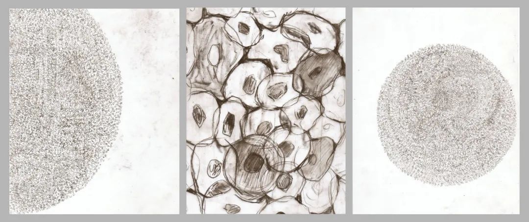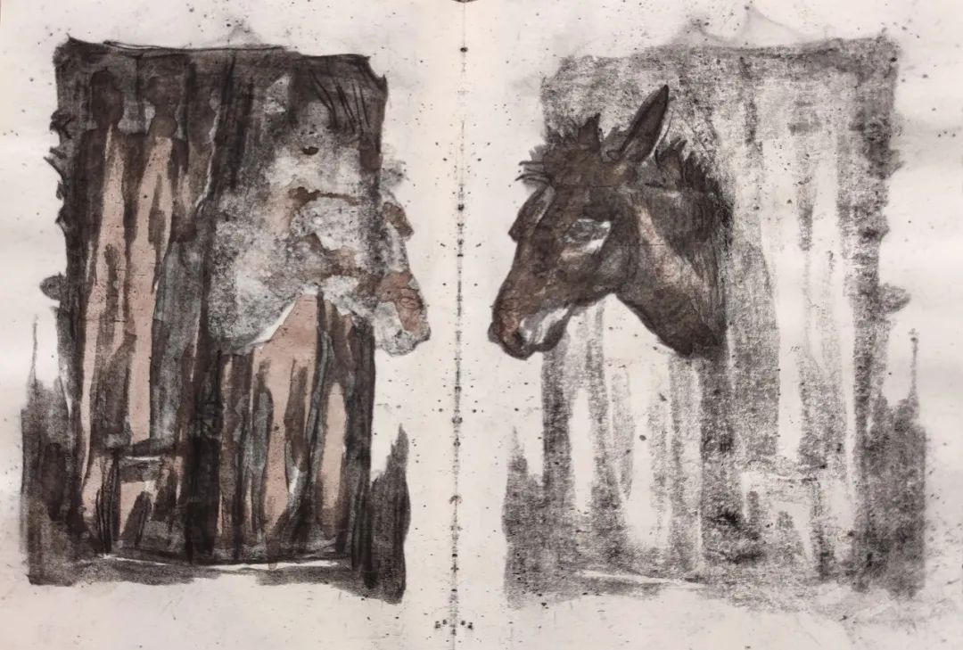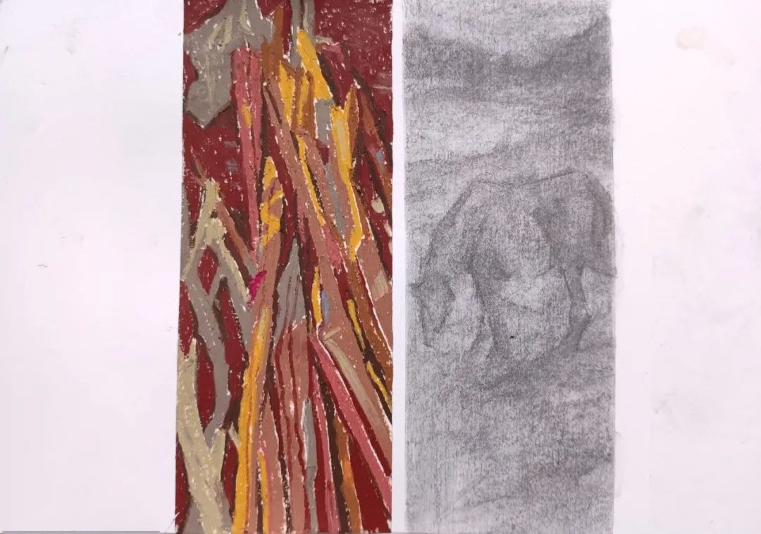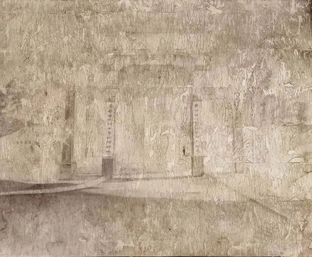 人与自然物在建筑表层交错而来的痕迹,传递过去带来的讯息,文字与水痕讲述了歙县的经历。此次写生改变了我的观察方式,使我可以更加直观清晰地表现形与物的特点,并对作品形成的逻辑性有所体悟。