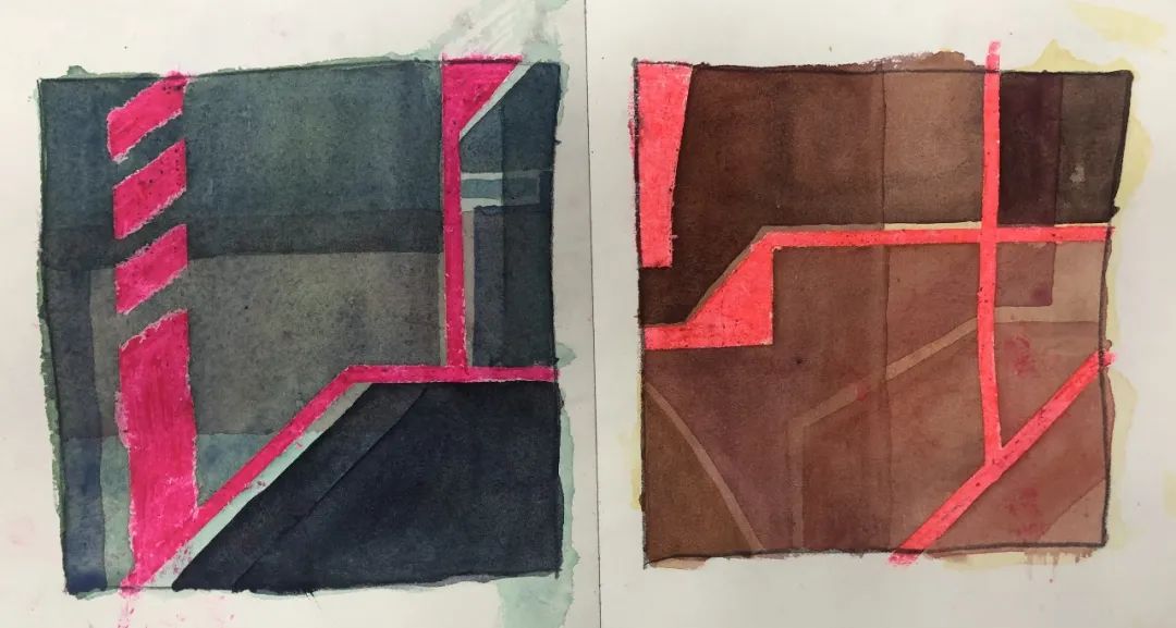 《歙县写生1》38x38cm 水墨、水彩 2021(左)