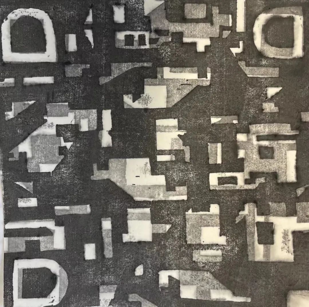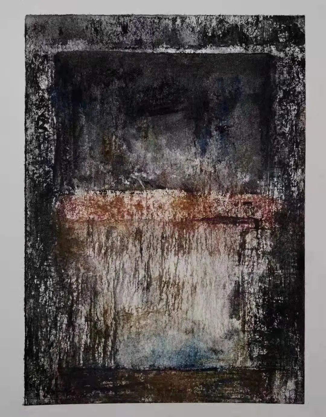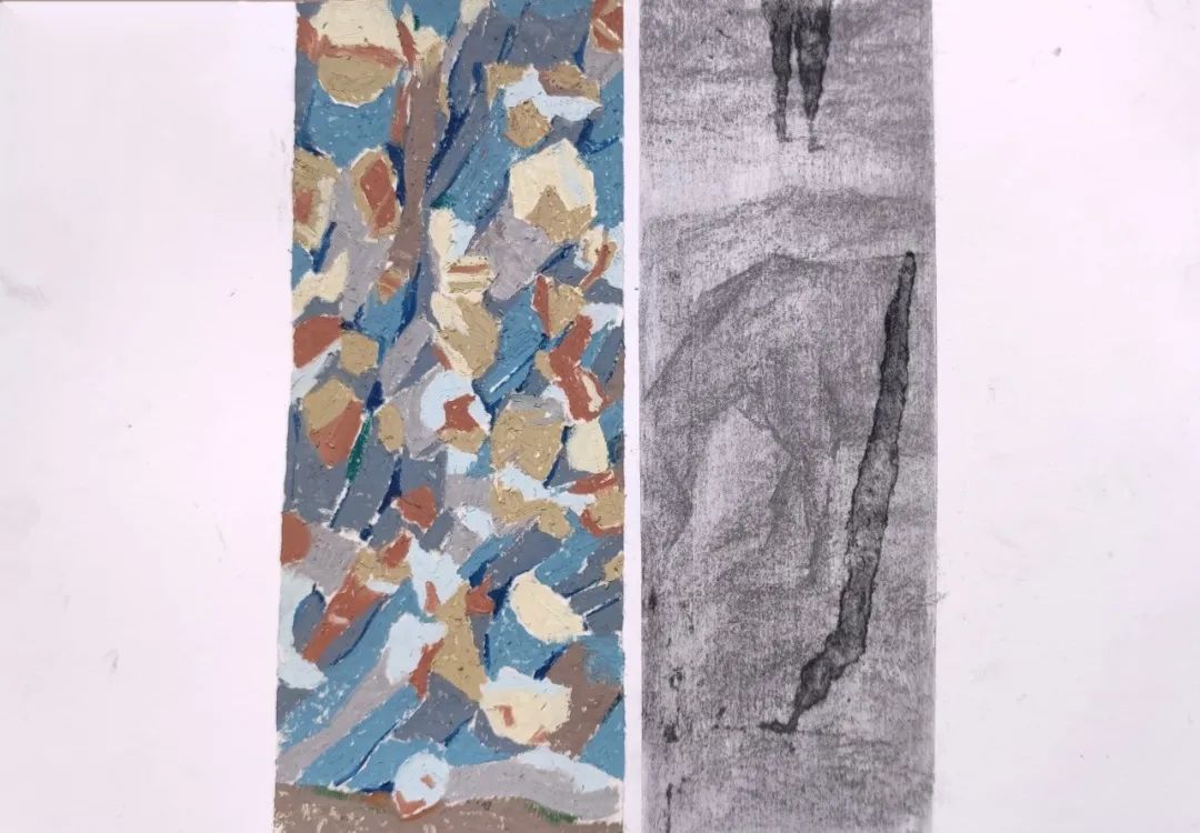 在本次下乡课程中,我以空间与时间为切入点。古镇里有许多堆砌着杂物的废弃房屋,随着古镇的发展,流逝的时间与不变的空间共存。我选用拼贴,拓印的方法体现空间与物体的分离,表现其内在的冲突与动乱的结合,以表现我此次下乡体会到的古镇的颓废美感。
