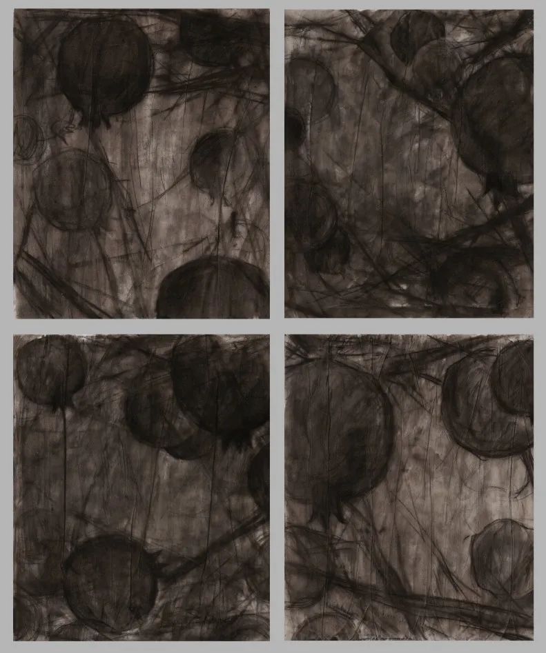 以渔梁坝村⺠庭院中的石榴为原点,探讨石榴的象征意义及其背后引发的思考。石榴象征着“多子,生育”。伴随着社会发展,人的精神独立与生殖繁衍生息碰撞,石榴的象征性意义在当今似转向为苦难、男权社会下被生育束缚的女性。作品通过反复与裂痕,试图探 讨“多”的意义。