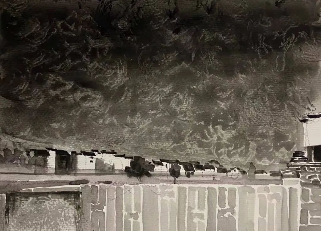《歙县写生4》38x38cm 水墨、水彩 2021