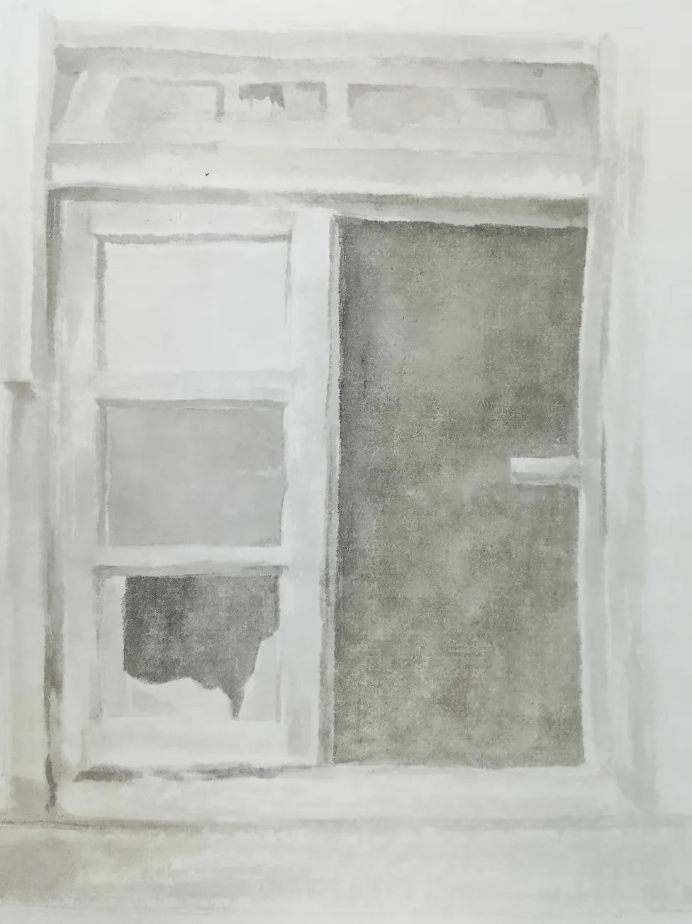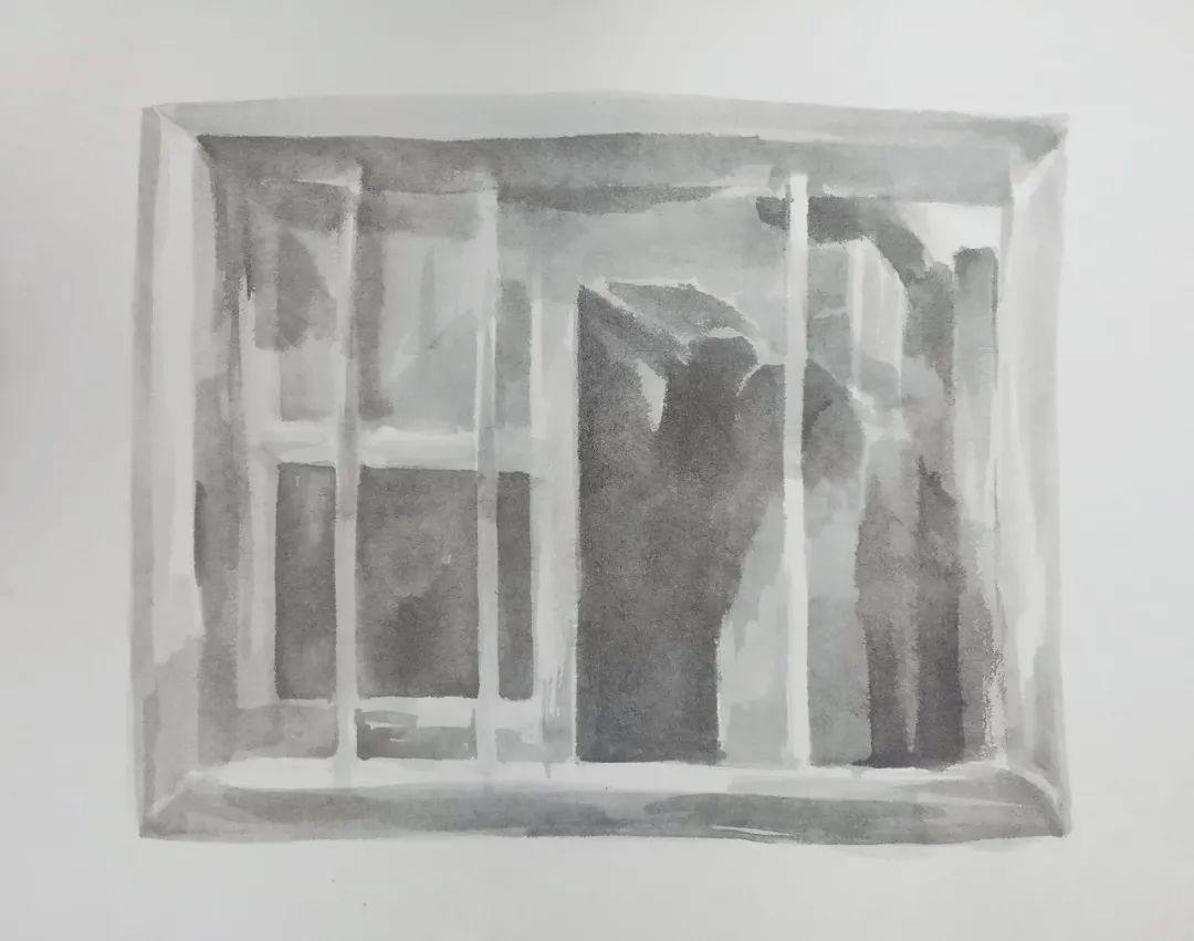 这次下乡是对大一时进行的,“观看”这一主题的延续。窗户的主要作用是采光和通风,也是一个空间与另一个空间的连通。从窗户外望向室内是一种窥视,有时在窥视的过程中也能通过玻璃看到自己;有的窗户被填满,使得内部空间与外界隔离,这种填充是对窥视的阻隔,是一种拒绝。从窗户内望向室外也是一种窥视,窗户里面的人希望与外界连通又与外界隔离,希望看清外部环境中的他人,又拒绝来自他人的窥视。封闭的窗户象征着人与人之间,矛盾且疏离的关系。