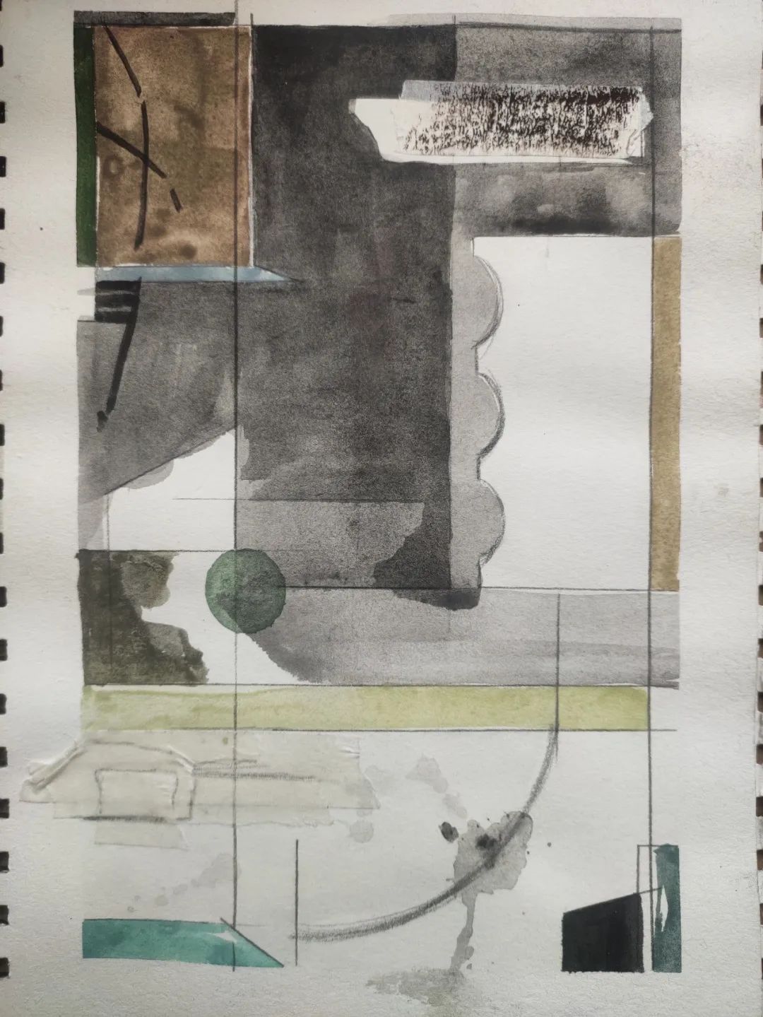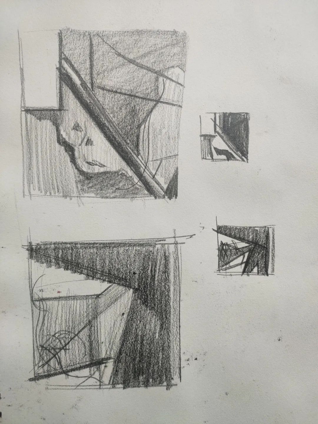第一次以自己的视角和感受去创作,尝试了很多表达,挣扎、推翻、痛苦过很多次,最后还是把点落在徽式古建筑和现代痕迹的交错对话中。对有着古老神秘韵味的沉淀的抽离,加以现代语言,不断认识探索新环境、新角度、新想法、新方式,是一次不断发现、丰盈的过程,可能作品还没有得到最好呈现,但依旧收获受益满满。