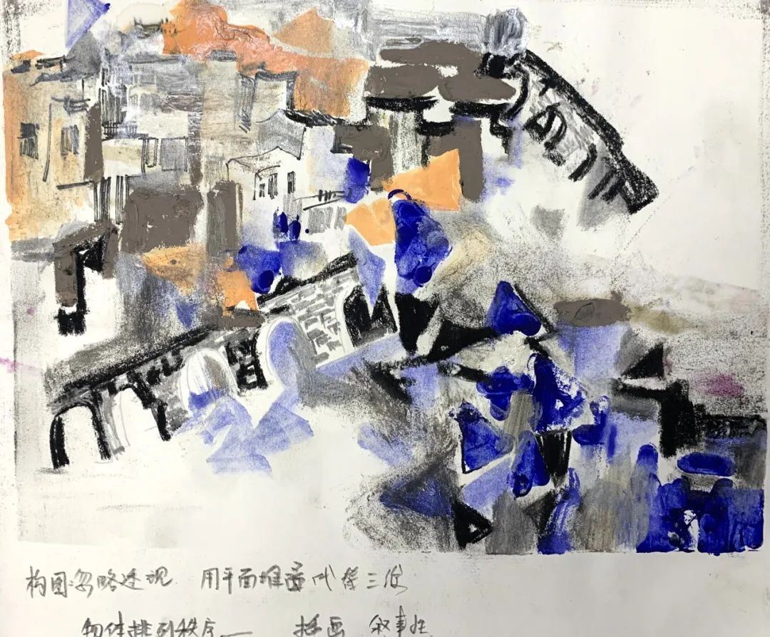 本次下乡课程为期三周,在综合绘画系副主任黄庆老师的带领下,绘画艺术学院综合绘画系综合材料绘画工作室本科二年级、本科三年级、研究生一年级学生围绕渔梁坝写生点展开考察,歙县该写生点既具有古村落自然景观特征,兼具古建筑文化特征,多维度、多时空的特征汇聚在一个点上,为实践者未来的艺术研究方法的养成与艺术研究意识的提升提供良好的基础环境。黄庆老师认真严谨的授课讲解,一对一形式的看稿,以及生动的理论讲述为我们留下了深刻的印象。