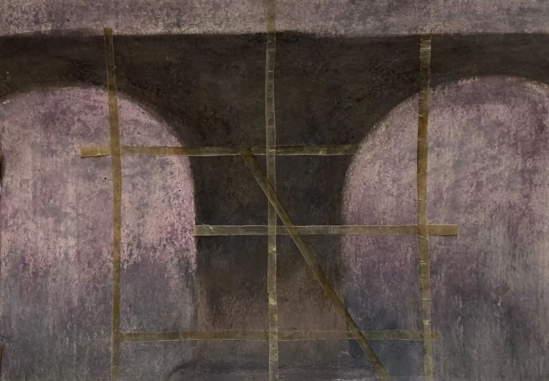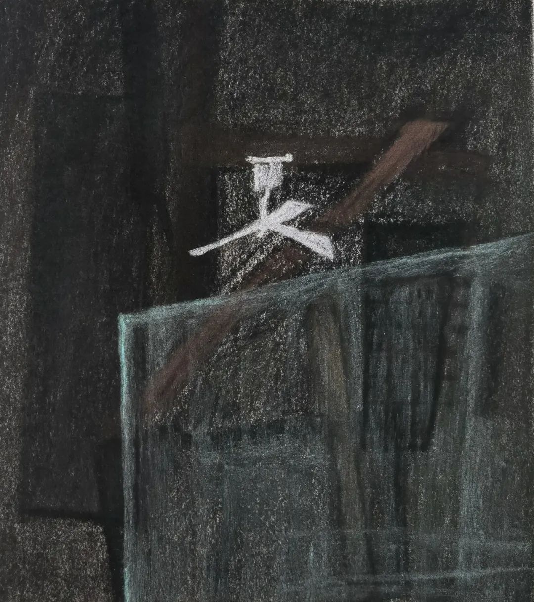 寻找冲突是在和谐中寻找不和谐的因素,而聚焦这些矛盾是艺术家发现世界的途径。从情绪到符号再到语言,按照提出方案、绘制小稿、完善小稿、形成作品四个步骤依次进行,是本次创作形成的主要方式。关注建筑的结构硬边,感受徽派建筑与徽派人家冷静强硬、爱憎分明的态度;发现从狭小洞口和门缝透出的光,探索人对未知的渴望与对希望的期待; 聚焦在自然作用下形成的沙洲,思考时间的沉淀,历史与文化的累积。